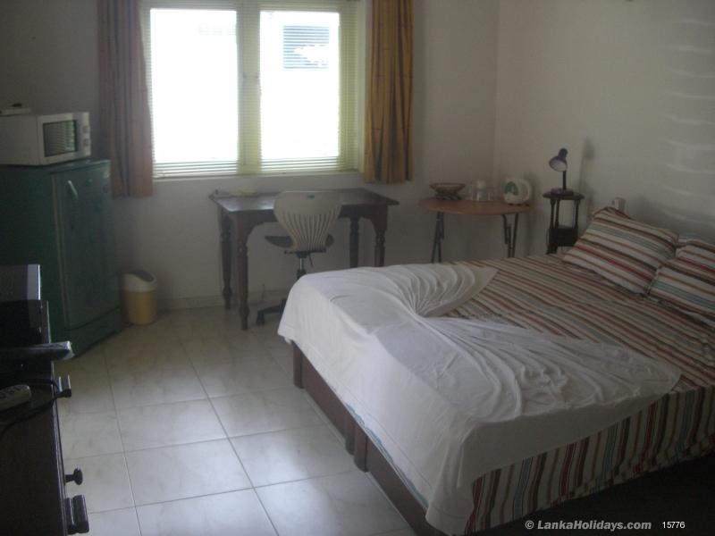 Bedroomed apartment with a panoramic view of the Beira Lake. ( additonal rooms could be provided if requested early ) Three wash rooms with hot water and Roof Top Deck with Mini Sauna & some gym equipment and Jacuzzi. Fully fitted pantry (gas cooker, fridge, micro wave oven, etc.), garden, Cable TV/DVD, computer with printer/scanner & 24 hour free wi-fi. Two minute walk to Keells Super Market/ Crescat Food Court & The Cinnamon Grand Hotel . Additional folding bed or two could be provided on request.