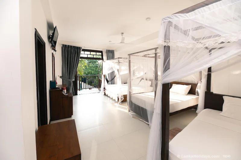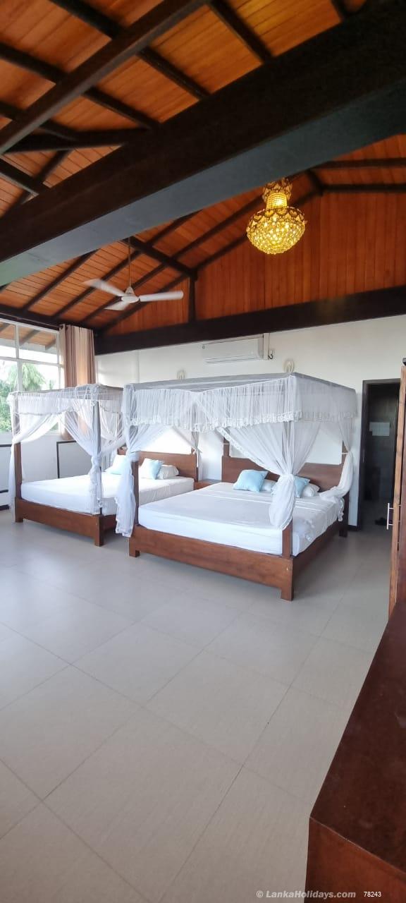 21 bedrooms luxury hotel inclusive with 3 bedrooms entire villa and 3 bedrooms apartment ideal for group of families and single travelers. The hotel is located at eco friendly background woth 300m to the famous kabalana surfing beach. The hotel offer room basis, bb, hb and fb package with day outing packages. Contact us for further details and reservation.