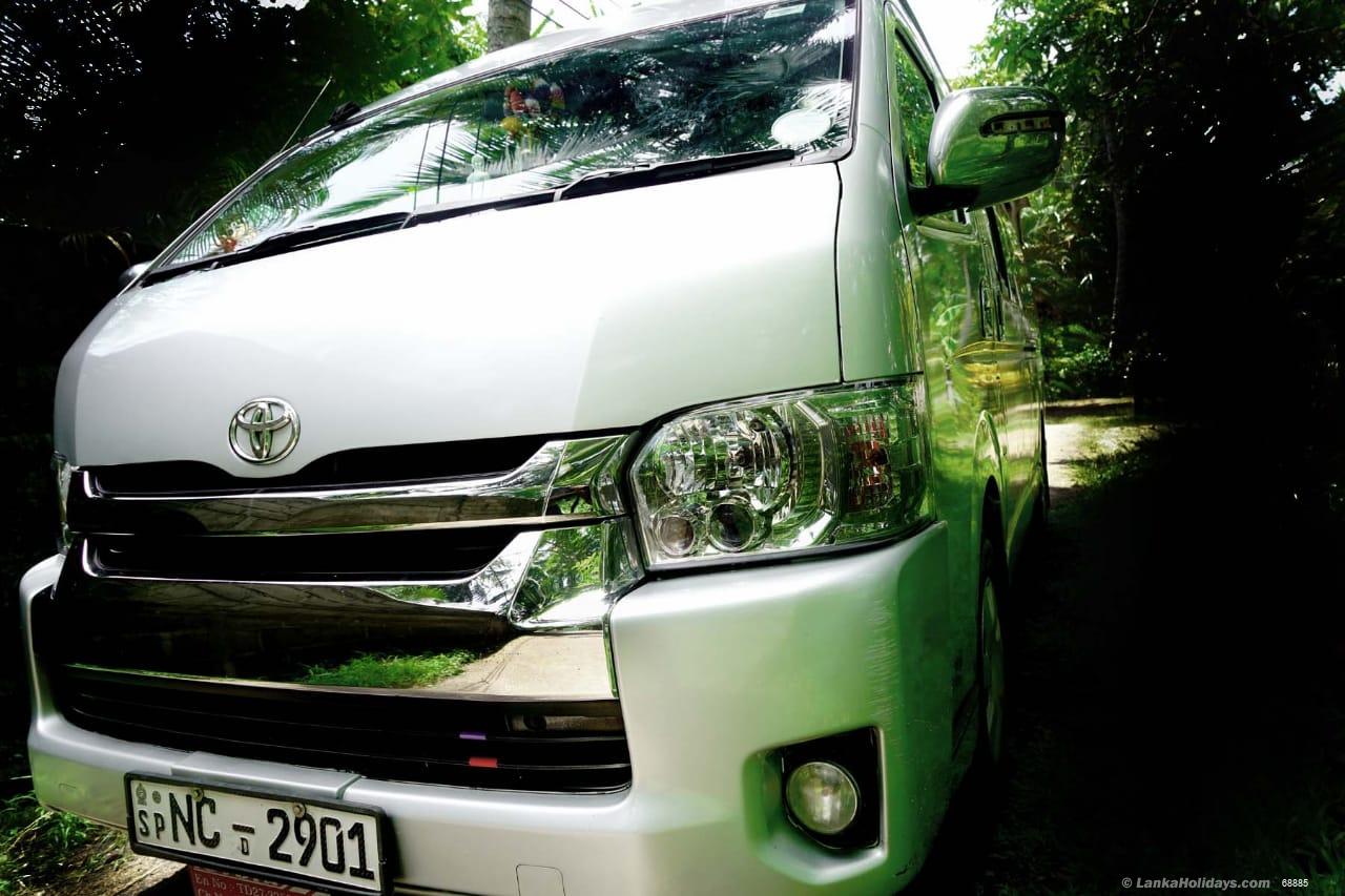 Toyota KDH Commuter super long-wide-high roof 14 seater consisting of dual/line AC, DVD/ Stereo Setup. bucket type/Individual adjustable passenger seats with head rest, safety belt,line AC outlet and ample leg-space. Very spacious and comfortable/luxury van. Polite , Reliable drivers wedding hires /round tours Seating capacity: 14 Seat with No luggage space or 10/12 Seat with luggage space.All vehicle /Drivers are Srilanka tourists board registered .https://sites.google.com/view/sheharacab0387301010/home